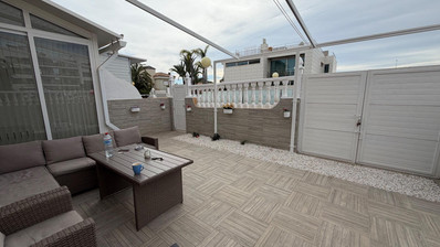 Discover this spectacular semi-detached triplex in the sought-after area of La Zenia, Orihuela Costa. With a constructed area of 120 m² and renovated in a modern style, this property offers three spacious double bedrooms distributed across three floors, ideal for families or groups seeking comfort. On the first floor, you'll find a large terrace perfect for enjoying the Mediterranean sun, as well as another glazed terrace that brings natural light into the dining room and connects it to the outdoors. Here you'll also find a fully equipped independent kitchen, perfect for creating delicious family meals. The spacious living room is ideal for relaxing after a long day by the sea. On the second floor, there are two cozy bedrooms and a full bathroom; meanwhile, the third floor features an additional bedroom next to a private office, perfect for working from home or studying, plus another conveniently located full bathroom. Its strategic location allows for easy access by public transport and is surrounded by shopping centers, satisfying all your daily needs without any additional hassle! Don't miss this unique investment opportunity so close to the ocean (just a few minutes' drive) and make it your dream home today. Shall we schedule a visit?
