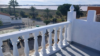 2-bedroom townhouse with terrace, solarium and garage in Torreta It is located in a quiet area next to the iconic Laguna Rosa in Torrevieja. A bright and well-maintained property, ideal both as a permanent residence and for enjoying getaways on the Costa Blanca. On the ground floor, there is a pleasant terrace with summer and winter awnings, perfect for year-round use. It also has a storage room, a cosy living room, a fully equipped kitchen and a full bathroom. The tiles on this floor have been recently renovated, giving it a fresh, contemporary style. The first floor has two bedrooms: one with a balcony and the other with an en-suite bathroom, offering comfort and independence. On the second floor there is a large private solarium of 30 m², with no neighbours around, ideal for sunbathing, relaxing or creating a chill-out area with total privacy. The property is in very good condition, in a very quiet residential neighbourhood. It includes a parking space and has access to the communal swimming pool. LOCATION: Torrevieja is in the province of Alicante (Costa Blanca). It is famous for its Mediterranean climate and its coast. We cannot forget its promenades where we can find some restaurants along the fine sandy beaches. It also has many excellent beaches such as Playa de los Náufragos, Playa de los Locos and Playa de la Mata. Therefore, it is considered a remarkable tourist town where the environment takes an important place as an important tourist attraction. In addition, we can find many shopping centres (Habaneras, La Zenia Boulevard), golf courses, sport centres, hospitals (such as Hospital Universitario de Torrevieja) and airports such as Alicante Airport (35 km away) and Region of Murcia International Airport (43 km away). DISTANCE TO THE SEA: 3000m COMUNITY: 50 €/ trimester IBI: 103 €/year Should you have any question do not hesitate to contact us!
