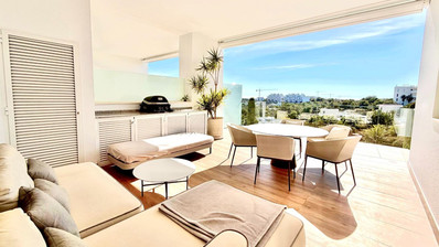 Beautiful Ground Floor Apartment in Las Colinas Golf – Space, Privacy & Southern Light Welcome to this stunning south-facing ground floor apartment in the exclusive Naranjo community of Las Colinas Golf. Built in 2020 and maintained in excellent condition (the building was freshly painted in 2025), this property offers comfort, privacy and effortless Mediterranean living. With 90 m² built, the apartment features two spacious bedrooms and two fully equipped bathrooms with underfloor heating. The bright living area flows seamlessly into a generous 35 m² front terrace overlooking the beautifully maintained communal green areas with open views towards the sea. At the back, a second private terrace and garden area provide extra privacy and a shaded retreat during the warm summer months. The fully equipped kitchen includes high-quality appliances, and the property is sold completely furnished, ready to move in. Designed for modern comfort, it also features a smart home system, air conditioning (hot and cold), LED lighting, electric shutters in all rooms, and a water filtration system. Residents of Naranjo enjoy access to landscaped gardens and a stylish communal swimming pool. The apartment also includes a private underground parking space and a storage room, with lift access for added convenience. Located just 2 km from golf and amenities, 7 km from the beach, and approximately 45 minutes from the airport, this is an ideal property for those looking for a refined second home, an investment, or a permanent residence in one of the most prestigious resorts on the Costa Blanca. ✨ A place where comfort, quality and southern sunshine come together beautifully. Contact us to arrange your private viewing.