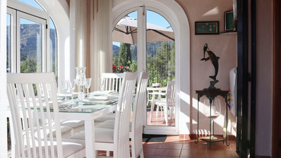Located in a sought after area between Benigembla and Murla this fabulous 4 bedroom, 4 bathroom detached villa is ready and waiting for new owners,Set on a plot of 833sqm this lovely detached, private south facing villa benefits from a separate guest apartment, private parking and pool and stunning mountain views.An electric vehicular gate opens to the driveway where a few steps take you to the fabulous pool terrace where a short flight of stairs lead to the main living accommodation where a fully glazed door leads into the part glazed terrace with a charming dining area with stunning mountain views. A further door leads out onto the open terrace - a fabulous space to enjoy morning coffee and watch the world go by.The dining area opens into a lovely lounge with barrelled and beamed ceiling and a feature fireplace wiith log burner and the fully fitted kitchen is adjacent to the lounge. An inner hallway leads to the two spacioius double bedrooms and the two bathrooms one of which is en-suite with a full bath and the second bathroom with a shower.At ground floor level there is a separate guest apartment where the accommodation comprises two bedrooms, two bathrooms, a kitchen / utility room and a separate lounge. There is direct access to the fabujous pool and sun terrace from one of the bedrooms at this level making it perfect for family and friends to stay independently.Adjacent to the guest apartment is the fabulous fully equipped summer kitchen with bar - a great space for entertaining or just enjoying outside dining with friends - and of course the super 8 x 4 private pool with poolside shower.Outside you have access to the garage which is currently used as a workshop and the carport with ample space for family vehicles. The pool pump room is easily accessible and benefits from additional storage space.The beautiful mature gardens around the property are planted with native Mediterranean palms and trees and provide wonderfuly shady areas and bursts of colour all year round.The traditional village of Benigembla is just 2km away with local amenities including 3 bars with restaurants, small supermarket, bakery, pharmacy, doctors surgery and local school. The larger towns of Jalon and Orba are just a 10 minute drive away with a wider choice of bars, restaurants, independent stores and supermarkets.The beautiful beaches at all of Calpe, Denia, Javea and Moraira can be reached within half an hour and the airports at both of Alicante and Valencia are with an hour and a half easy motorway drive.A great opportunity if you are looking for a property in this beautiful part of the Northern Costa Blanca - this beautifully maintained home offers spacioius living accommodation with separate guest apartment, private pool, versatile terraces, outside dining and stunning views - ideal as a wonderful family home or holiday home.SPECIFICATION INCLUDES: Private Driveway; Private Garage; Private Pool; Separate Apartment; Full Summer Kitchen; Rejas (all doors and windows); Mains Utilities including Mains Gas; FibreThe Property Team know that buying a property in Spain is a huge decision but with our local knowledge we can guide you through the process and answer any questions or concerns you may have. We are always contactable whenever you need us and if no properties on our own website meet fully with your requirements just let us know what you are looking for and we will search for the right property for you.