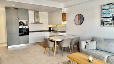 The property has an excellent layout with 3 large bedrooms with fitted wardrobes and 2 bathrooms designed for comfort and functionality. Both bathrooms have underfloor heating, and the property is equipped with air conditioning to ensure a comfortable indoor temperature all year round. The kitchen is fully equipped with modern appliances, and the entire property is lit with energy-efficient LED spotlights. The living room has large sliding windows with solar control glass that allow great natural light while maintaining indoor comfort.The property is sold with all indoor and outdoor furniture - you really can move straight in!