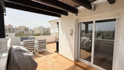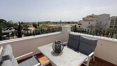 Hacienda Riquelme Golf ResortExperience the pinnacle of resort living in this stunning second-floor penthouse, meticulously modernised to an exceptional standard. Occupying what is arguably the finest position on the resort, this property combines sleek, contemporary design with arguably the best panoramic views available.The Living SpaceThe heart of this home is a spacious, light-filled lounge. Unlike standard models, this apartment benefits from two additional windows, flooding the space with natural light and enhancing the sense of openness.Sleek Kitchen: A chef’s delight featuring high-gloss white units contrasted by premium black work surfaces.Designer Upgrades: Forget the dated original finishes; the current owners have replaced all "dull brown" internal doors and wardrobes with a vibrant, crisp white, creating a fresh and airy Mediterranean feel throughout.Luxury Bathroom: A complete sanctuary featuring a modern walk-in shower and high-end fixtures.The Terrace & ViewsStep outside onto the massive "L" shaped terrace. This expansive outdoor space is a sun-worshipper's dream, positioned to capture sunshine all day long. Whether you are dining al fresco or lounging with a book, you’ll be doing so against the backdrop of the resort's most breathtaking vistas.Prime LocationLocation is everything, and this penthouse delivers.Amenities: A mere 1-minute walk to the resort’s heart, including the clubhouse, restaurant, and supermarket.Leisure: Access to 19 communal pools and the beautifully maintained golf course.Connectivity & SurroundingsWhile the resort offers a peaceful retreat, you are perfectly positioned to explore the Costa Cálida:Sucina Town: Just 4km away for local shops and traditional dining.Murcia Airport (RMU): A convenient 20-minute drive.Blue Flag Beaches: Only 20 minutes to the stunning coastline.Murcia City: 25 minutes to the vibrant historic city centre.This is not just another apartment; it is a bespoke luxury residence in the resort's most coveted spot. Early viewing is highly recommended.